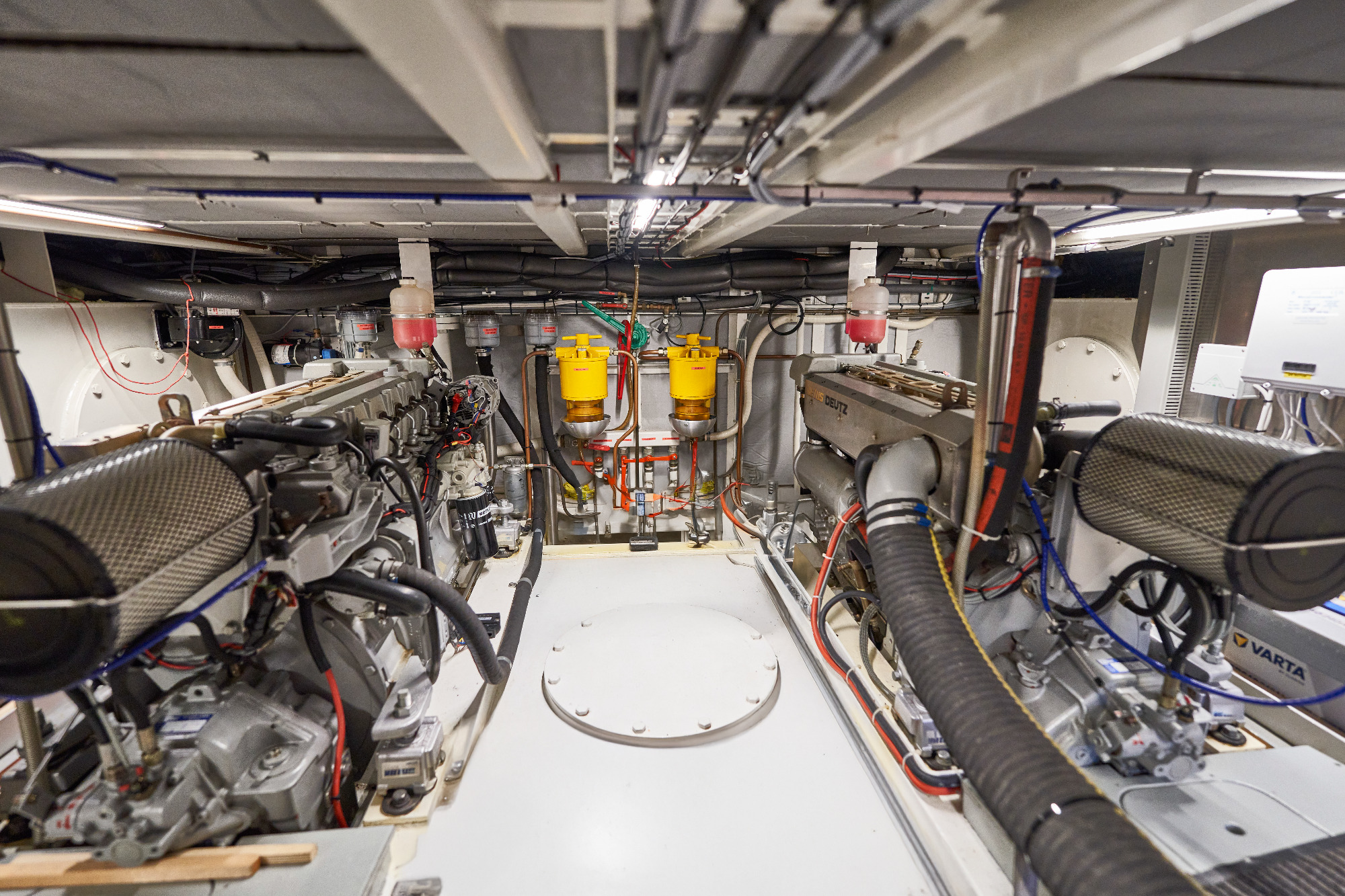 Motor 2 x Vetus Deutz DT 64 Diesel Isolation Steinwolle Generator Vetus 12kVA Batterien Ja Starter 2x Versorgung 8x 75 Ah Generator 1x 72 Ah Antrieb Welle Propellerwelle Edelstahl Propellertyp fest (4 Blatt) Schmierung Welle Wasser Kühlung Motor ind. Wärmetauscher