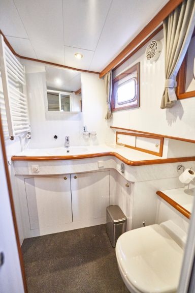 Die ALMTRAWLER 1600 AD, gefertigt von der renommierten Werft De Alm BV Werkendam in den Niederlanden, ist eine beeindruckende Motoryacht, die sowohl Komfort als auch Leistung bietet. Mit einer Rumpflänge von 16,80 m und einem Gewicht von 35 Tonnen vereint dieses Modell Stabilität und Raum. Die Breite von 4,80 m sorgt für großzügige Bewegungsfreiheit an Bord, während der Tiefgang von 1,40 m eine optimale Manövrierfähigkeit gewährleistet. Die ALMTRAWLER 1600 AD entspricht der CE-Norm A, was bedeutet, dass sie höchste Sicherheitsstandards erfüllt. Mit einer Durchfahrtshöhe von 8,00 m ist sie zudem ideal für verschiedene Gewässer.